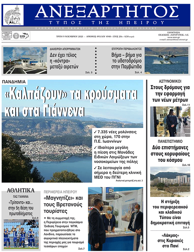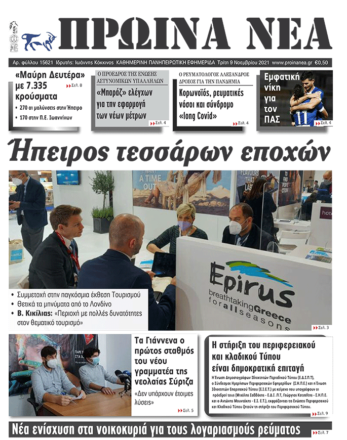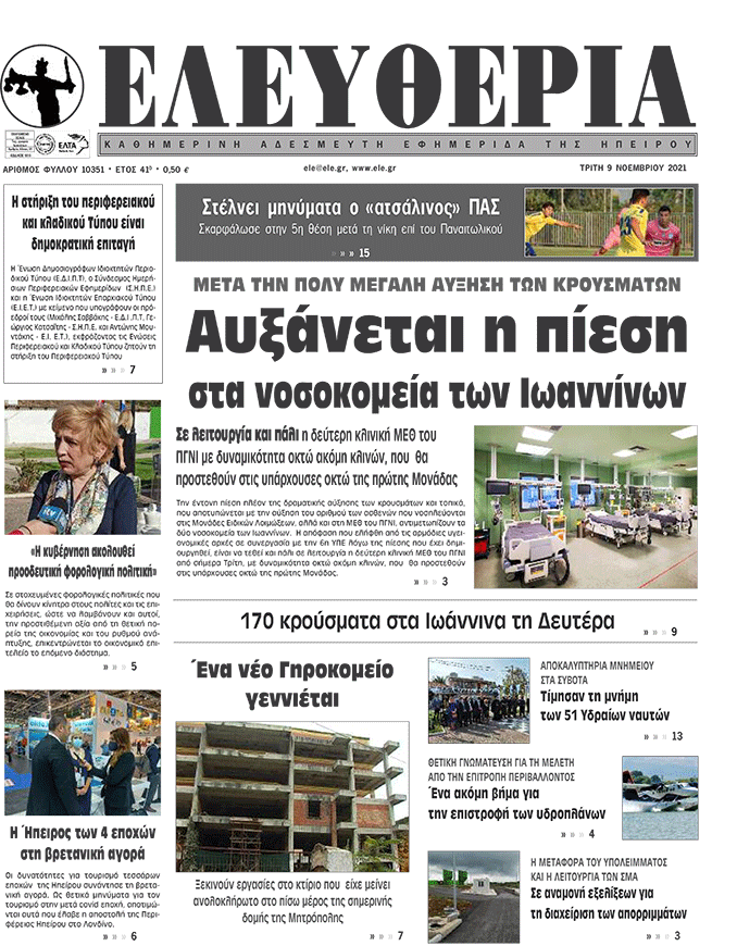 Διαβάστε στα πρωτοσέλιδα των γιαννιώτικων εφημερίδων της Τρίτης 9 Νοεμβρίου