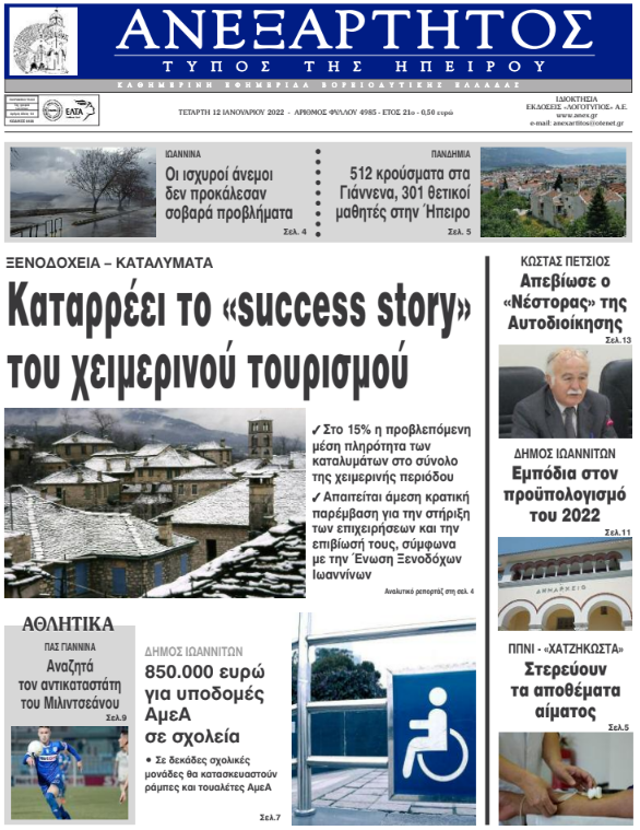 Διαβάστε στα πρωτοσέλιδα των γιαννιώτικων εφημερίδων της Τετάρτης 12 Ιανουαρίου