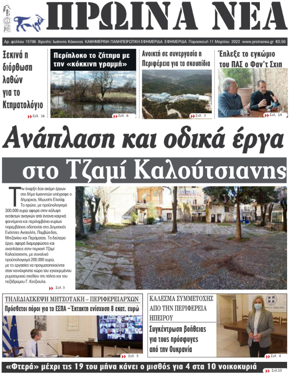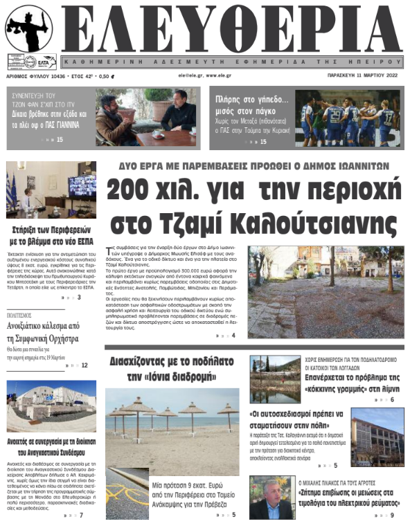 Διαβάστε στα πρωτοσέλιδα των γιαννιώτικων εφημερίδων της Παρασκευής 11 Μαρτίου