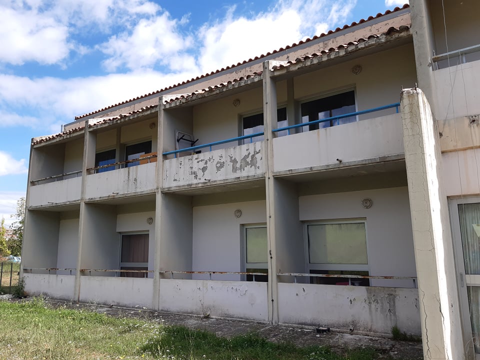 Το κτήριο παρουσίαζε έντονες φθορές με ρηγματωμένα και αποσαθρωμένα τμήματα και με εμφανή αποκάλυψη του οξειδωμένου οπλισμού στα δομικά στοιχεία του.