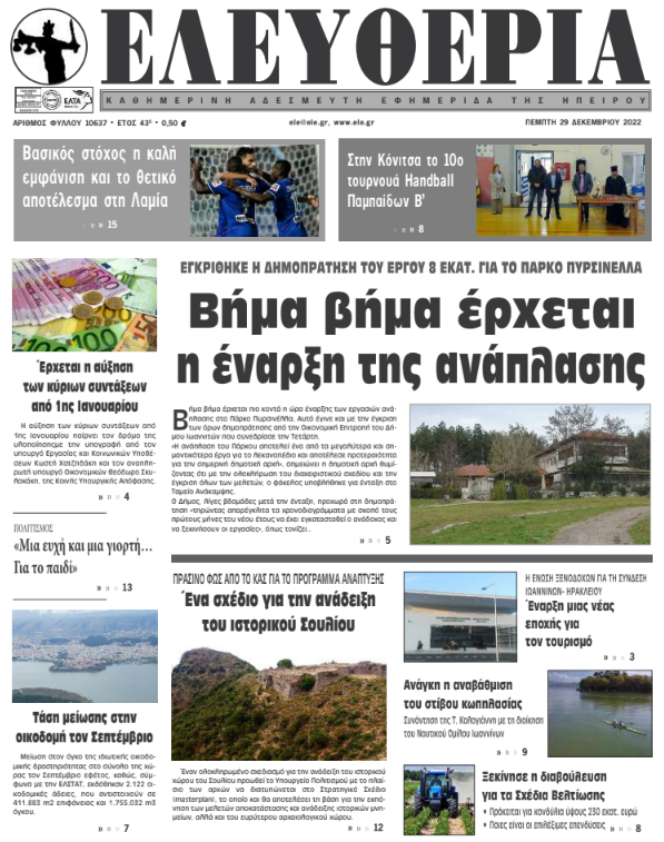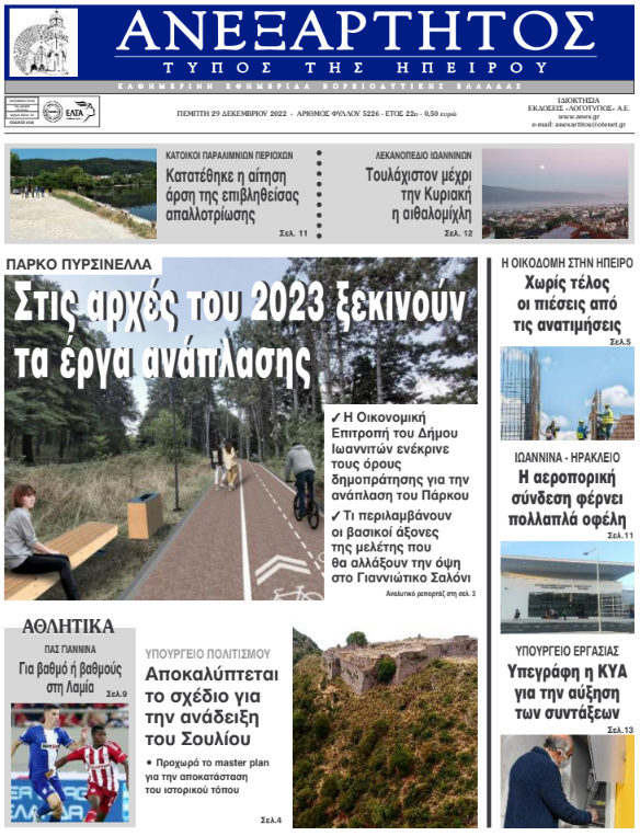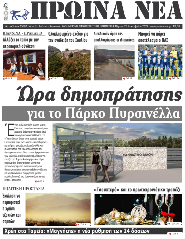 Διαβάστε στα πρωτοσέλιδα των γιαννιώτικων εφημερίδων της Πέμπτης 29 Δεκεμβρίου