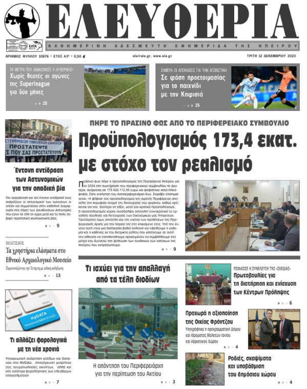 Διαβάστε στα πρωτοσέλιδα των γιαννιώτικων εφημερίδων της Τρίτης 12 Δεκεμβρίου