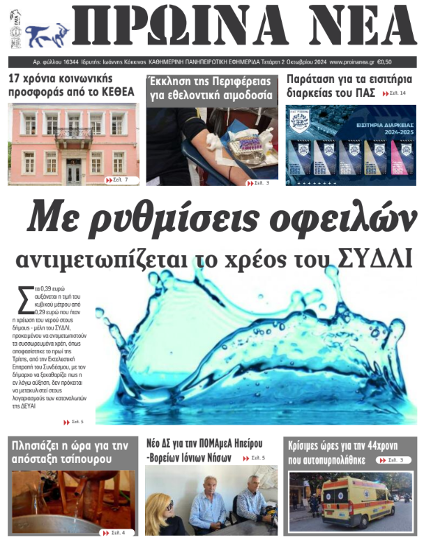 Διαβάστε στα πρωτοσέλιδα των γιαννιώτικων εφημερίδων της Τετάρτης 2 Οκτωβρίου