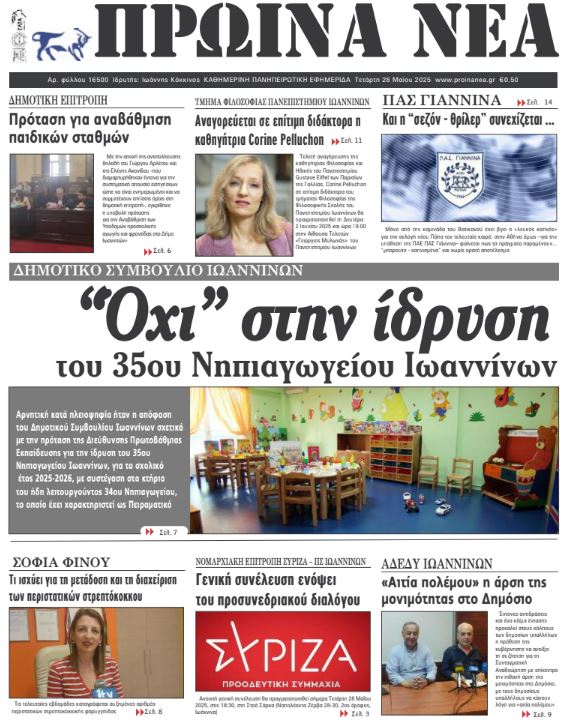 Διαβάστε στα πρωτοσέλιδα των γιαννιώτικων εφημερίδων Τετάρτη 28 Μαΐου 2025