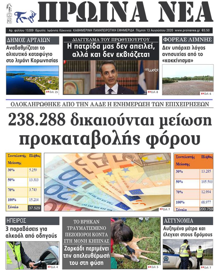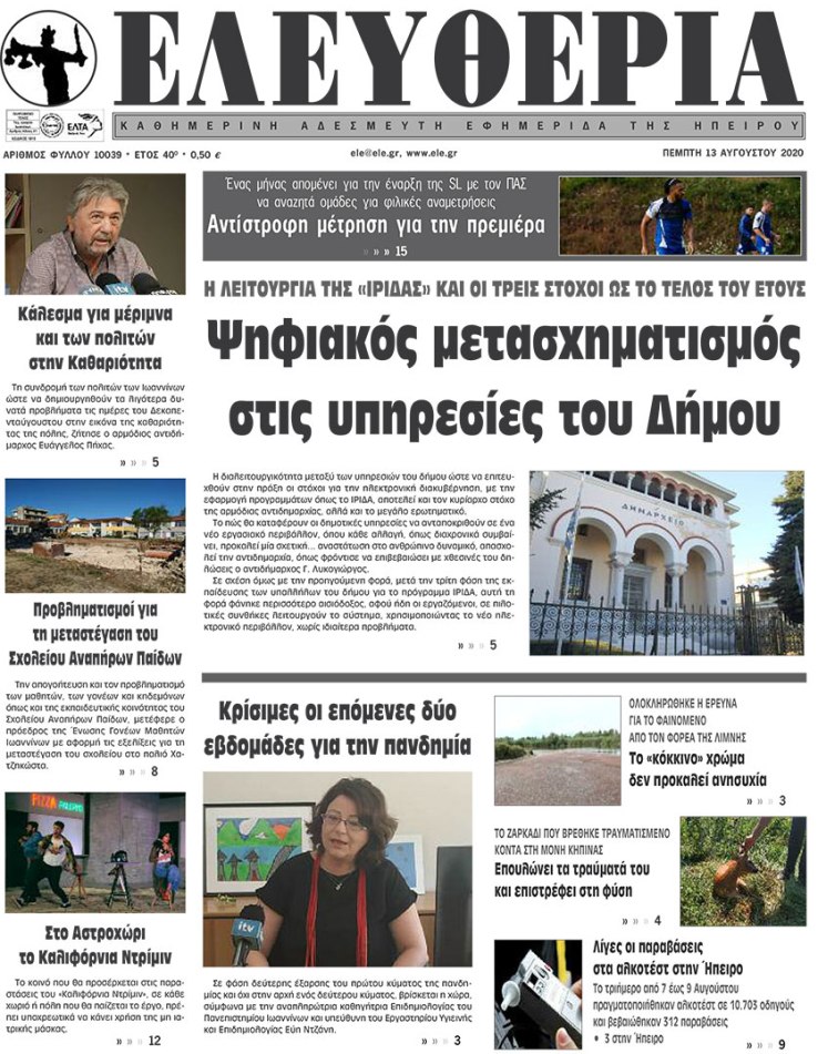 Διαβάστε στα πρωτοσέλιδα των γιαννιώτικων εφημερίδων σήμερα Πέμπτη 13 Αυγούστου