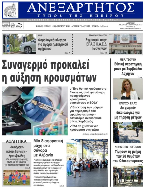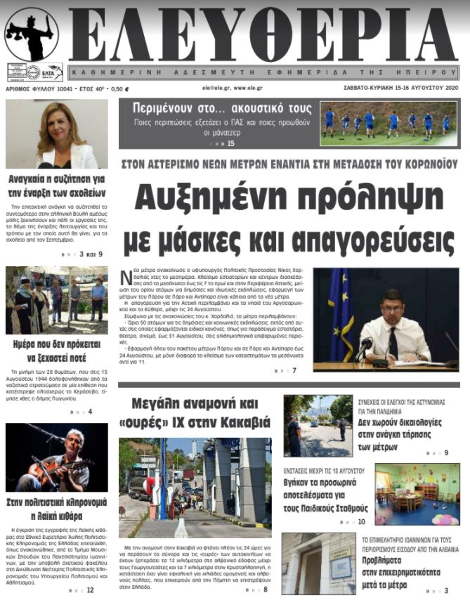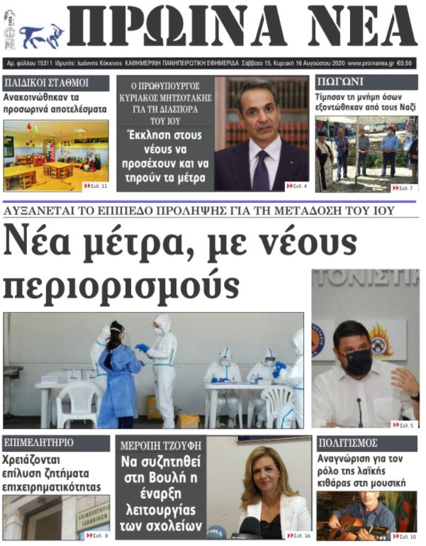 Διαβάστε στα πρωτοσέλιδα των γιαννιώτικων εφημερίδων του σαββατοκύριακου 15-16 Αυγούστου