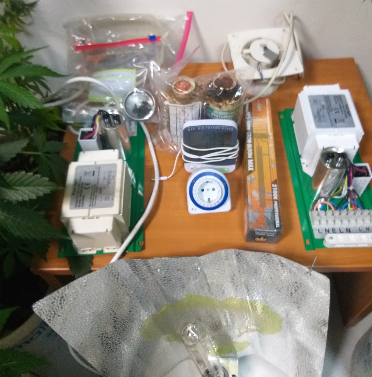 - εξοπλισμός συστήματος καλλιέργειας δενδρυλλίων κάνναβης εσωτερικού χώρου (αποτελούμενο από μετασχηματιστές ηλεκτρικού ρεύματος, λαμπτήρες υψηλής ισχύος, θερμόμετρο-υγρόμετρο, χρονοδιακόπτη ηλεκτρικού ρεύματος, ανεμιστήρα εξαερισμού, υγρό ενισχυτικό λίπασμα)