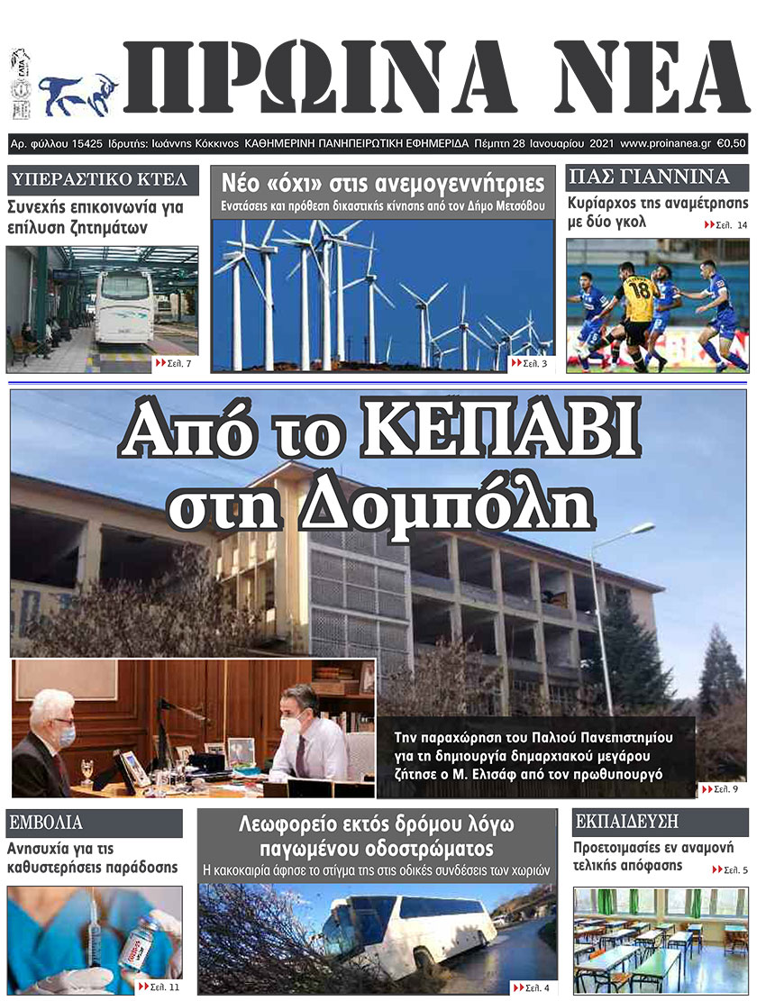 Διαβάστε στα πρωτοσέλιδα των γιαννιώτικων εφημερίδων της Πέμπτης 28 Ιανουαρίου