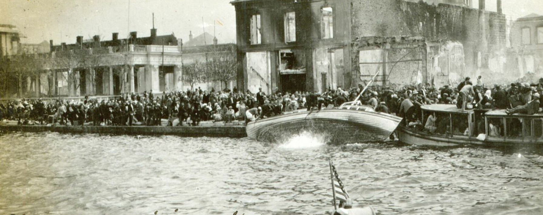 Βρίσκονταν όλες στην προβλήτα και δεν έμοιαζε καθόλου με σεισμό ή κάτι τέτοιο διότι ποτέ δεν έμαθαν για τον Τούρκο. Ποτέ δεν έμαθαν τι θα έκανε ο Τούρκος. Θυμάσαι που μας διέταξαν να μην πλησιάσουμε το λιμάνι και να μην μαζέψουμε άλλους; Όταν εκείνο το πρωί μπήκαμε στο λιμάνι ήμουν τρομερά ανήσυχος. Είχε στη διάθεσή του αρκετές πυροβολαρχίες και θα μπορούσε να μας τινάξει όλους στον αέρα. Ήταν να μπούμε μέσα, να πλησιάσουμε στην προβλήτα, να ρίξουμε άγκυρα και μετά να βομβαρδίσουμε τον τουρκικό τομέα της πόλης. Αυτοί θα μπορούσαν να μας έχουν τινάξει στον αέρα αλλά κι εμείς θα μπορούσαμε να ισοπεδώσουμε ολόκληρη την πόλη. Απλώς μας έριξαν μερικές άσφαιρες βολές καθώς μπαίναμε στο λιμάνι. Κατέβηκε ο Κεμάλ και απέλυσε τον Τούρκο διοικητή. Για κατάχρηση εξουσίας ή κάτι τέτοιο. Μάλλον ήταν εκτός εαυτού. Θα γινόταν πραγματική κόλαση.