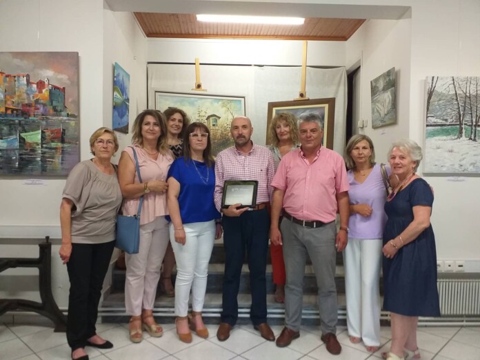 Ο καθηγητής εικαστικών του Τμήματος Ζωγραφικής Γεώργιος Τζούμας παρουσίασε το έργο των μαθητών και μαθητριών, ενώ ο Δήμαρχος απηύθυνε χαιρετισμό και συνεχάρη τόσο τον καθηγητή, όσο και τους καλλιτέχνες για το ταλέντο, τις υπέροχες δημιουργίες τους και την προσφορά τους στην προαγωγή του Πολιτισμού και των Τεχνών. Ο δήμαρχος πρόσφερε τιμητική πλακέτα στον δάσκαλο εκ μέρους του Δήμου, ενώ ο καθηγητής πρόσφερε έργο ζωγραφικής στον δήμαρχο.