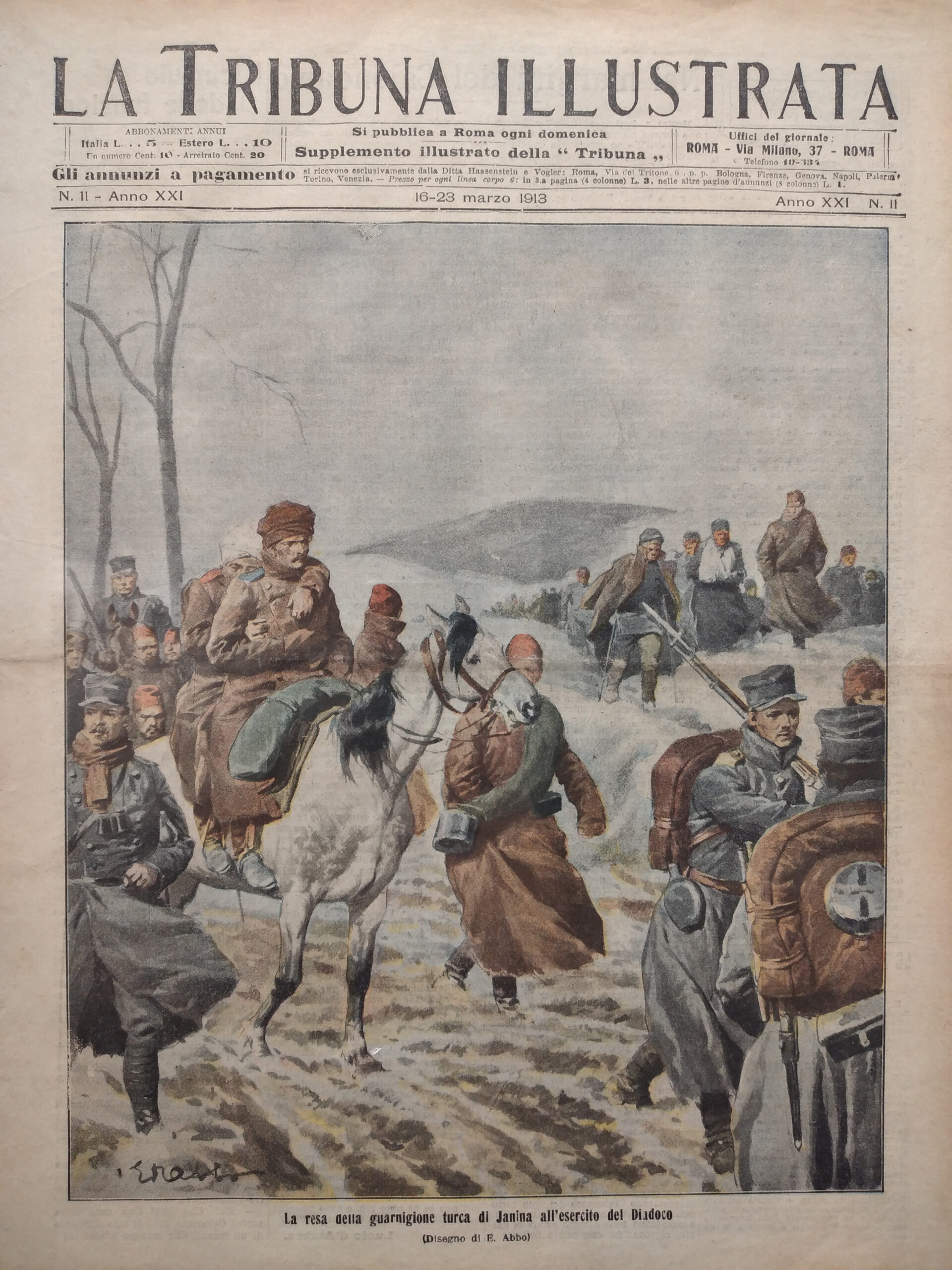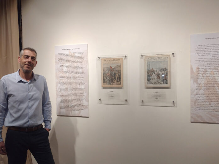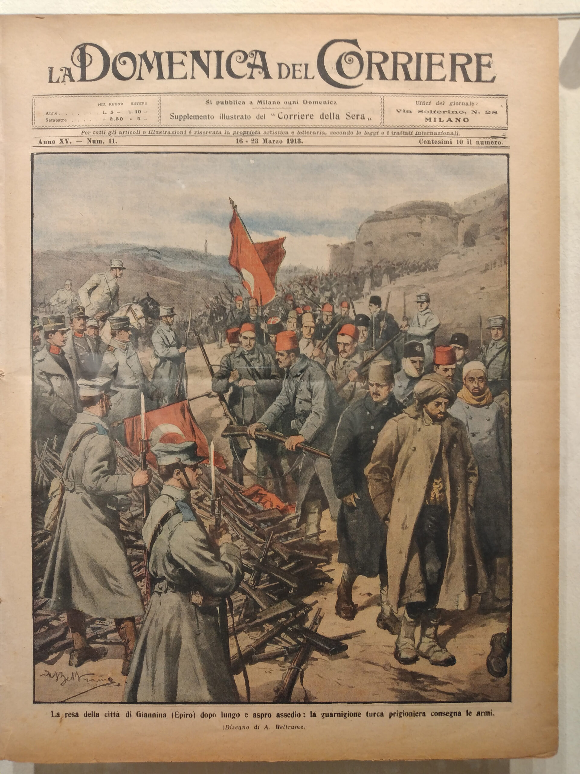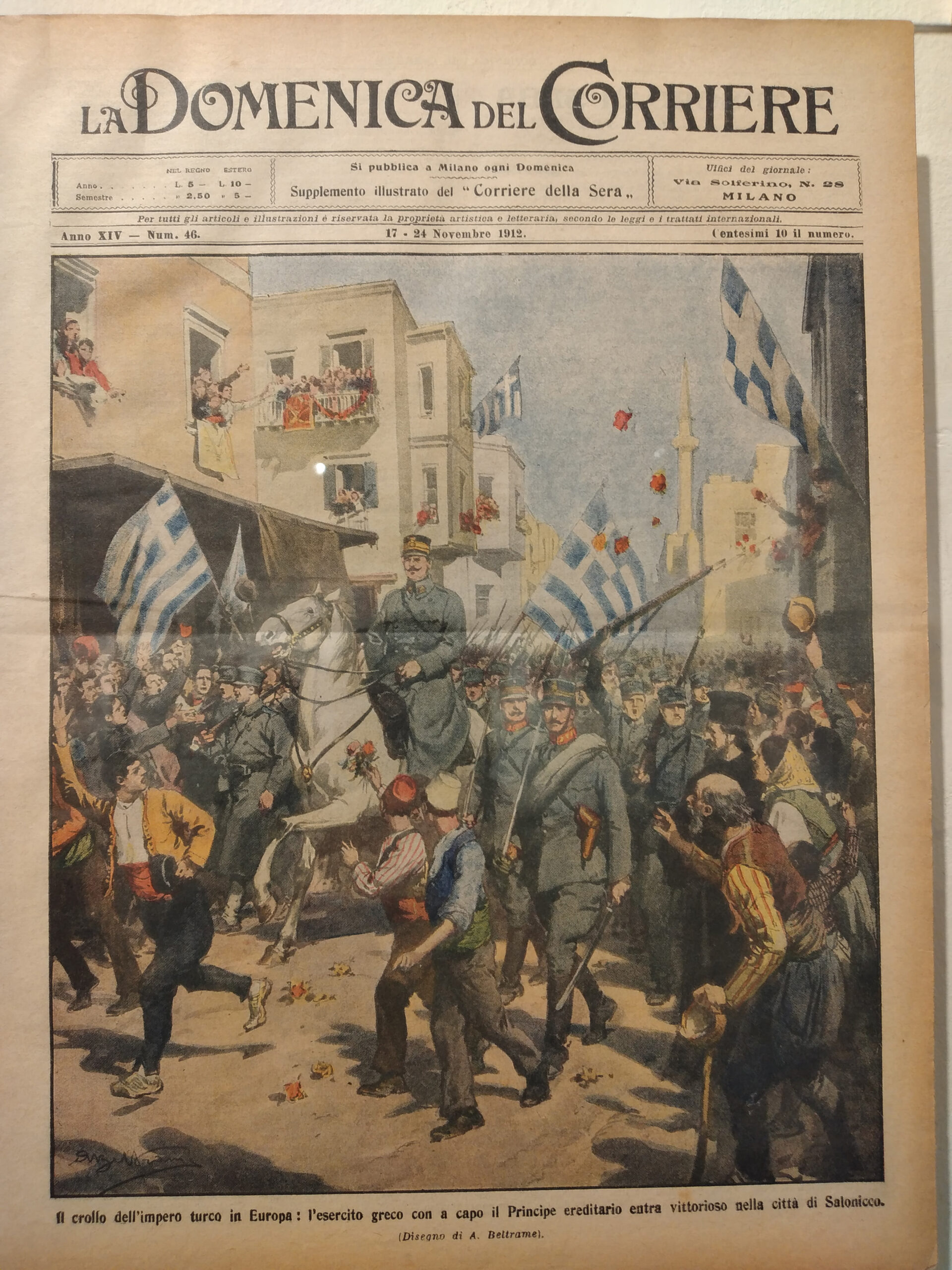 Ο τίτλος της έκθεσης είναι «Η Ελλάδα μέσα από τα πρωτοσέλιδα των ευρωπαϊκών εφημερίδων» και σε αυτήν παρουσιάζονται πρωτοσέλιδα ιταλικών και γαλλικών εφημερίδων αντίστοιχα, όπου όμως τον κυρίαρχο ρόλο παίζουν οι λιθογραφίες της εποχής, με σκίτσα που δημιουργούνταν κάθε εβδομάδα, αποτυπώνοντας στο χαρτί σημαντικά γεγονότα που προηγήθηκαν και έλαβαν χώρα κυρίως στην Ελλάδα. Ιδιαίτερη σημασία επομένως και εξέχουσα θέση στην έκθεση έχουν τα πρωτοσέλιδα για την απελευθέρωση των Ιωαννίνων με τον ιταλικό Τύπο να δείχνει μεγάλο ενδιαφέρον για τις εξελίξεις στο μέτωπο της Ηπείρου, πολύ περισσότερο από ότι για την απελευθέρωση της Θεσσαλονίκης.