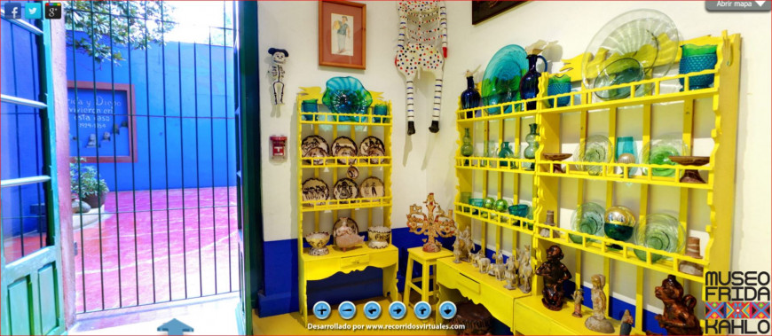 Online περιήγηση στη θρυλική Casa Azul (Μπλε Σπίτι), την οικία όπου η Κάλο πέρασε το μεγαλύτερο μέρος της ζωής της, και περιέχει κάποιους από τους πλέον σημαντικούς πίνακές της.