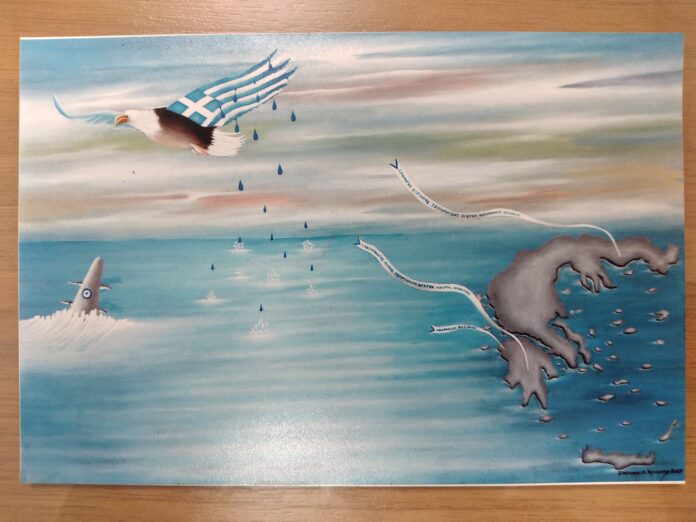 Αφιερωμένο στη μνήμη των δύο πιλότων της Πολεμικής Αεροπορίας που έπεσαν εν ώρα καθήκοντος στις 30 Ιανουαρίου του 2023, τον Σμηναγό Ευστάθιο Τσιτλακίδη και τον Υποσμηναγό Μάριο – Μιχαήλ Τουρούτσικα αντίστοιχα, είναι το έργο του ζωγράφου Σπηλιανού Στέλλου Βρυλλάκη, σε λάδι και καμβά. Ο ζωγράφος σε μήνυμά του αναφέρει πως η θυσία των δύο πιλότων θα μείνει βαθιά χαραγμένη στη μνήμη των Ελλήνων.