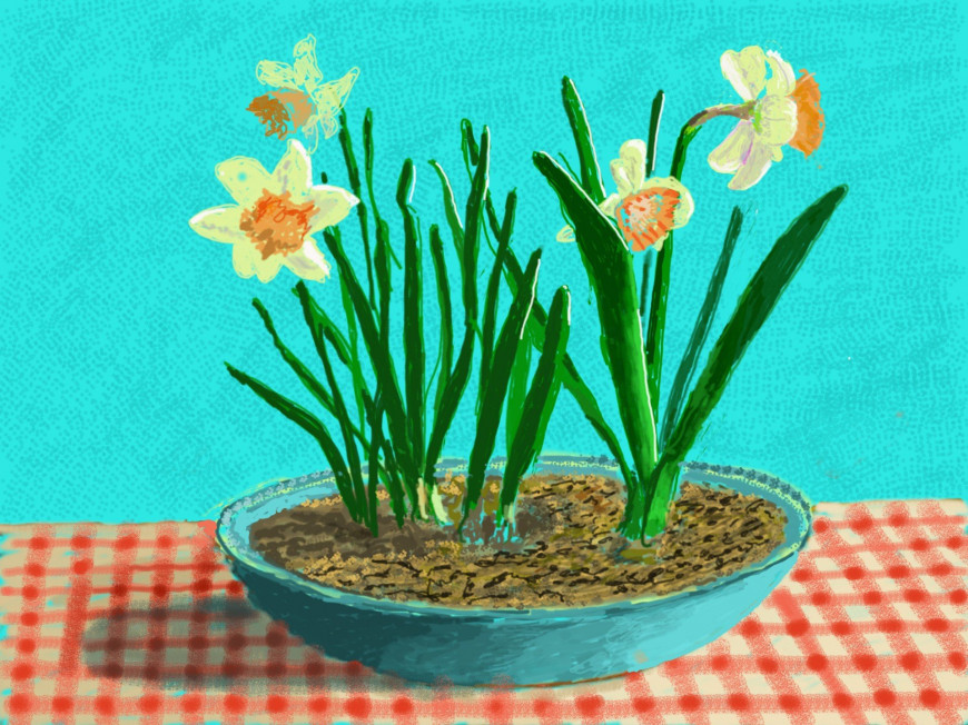 Περνά τις περισσότερες μέρες στον κήπο, ζωγραφίζοντας το ξύπνημα της άνοιξης στο iPad του και αποφάσισε μέσα από το BBC να μοιραστεί 10 από τα πιο πρόσφατα έργα του, εννέα εκ των οποίων δεν έχουν δημοσιευθεί ποτέ πριν. Ο Χόκνεϊ θέλει όλοι μας να τα απολαύσουμε σε αυτή τη δύσκολη στιγμή, μαζί με τις σκέψεις του για τον ρόλο της τέχνης στη ζωή.