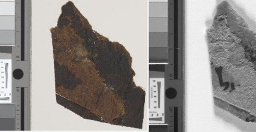 Κατά την προσεκτικότερη εξέταση ενός κομματιού της συλλογής, η ερευνήτρια Joan Taylor, από το King’s College του Λονδίνου διέκρινα αμυδρά ένα γράμμα. Μετά από αυτή την υπόδειξη υποβλήθηκαν σε φωτογράφηση 51 φαινομενικά κενά κομμάτια που το μέγεθός τους ξεπερνούσε το ένα εκατοστό.