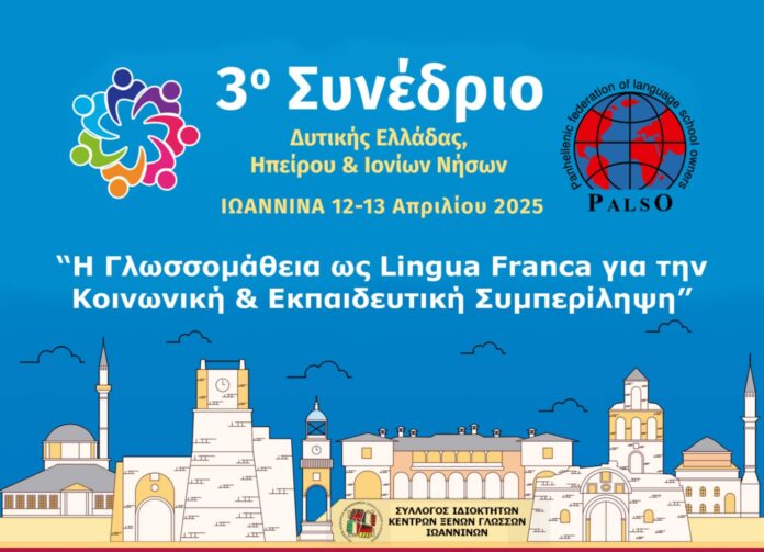 To 3o Συνέδριο Δυτικής Ελλάδας, Ηπείρου και Ιονίων Νήσων διοργανώνει στις 12 και 13 Απριλίου στον συνεδριακό χώρο του ξενοδοχείου Du Lac ο Σύλλογος Ιδιοκτητών Κέντρων Ξένων Γλωσσών PALSO Ιωαννίνων.
