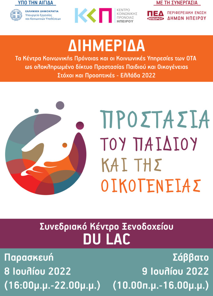 Το Κέντρο Κοινωνικής Πρόνοιας Ηπείρου, στο πλαίσιο του κοινωνικού και επιστημονικού του ρόλου, ανέλαβε την πρωτοβουλία διοργάνωσης διημερίδας αφιερωμένης στην Προστασία του παιδιού και της οικογένειας με τίτλο: