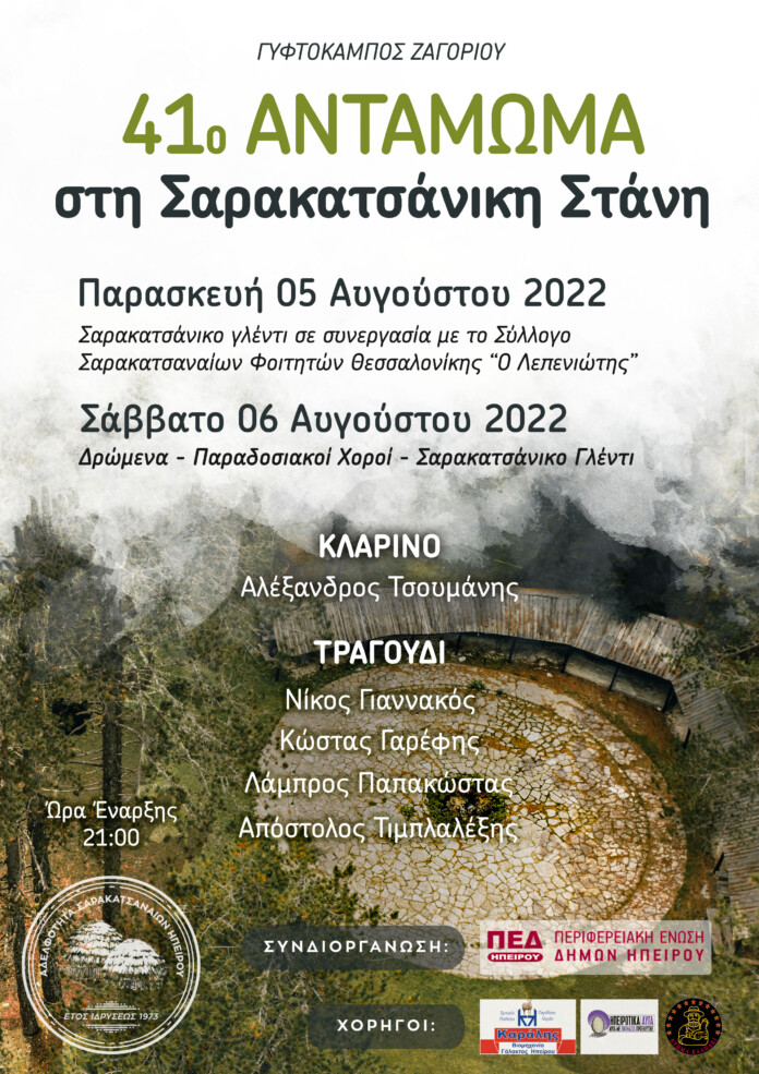 Η Αδελφότητα Σαρακατσαναίων Ηπείρου διοργανώνει την Παρασκευή 5 και το Σάββατο 6 Αυγούστου 2022 εκδηλώσεις στη Σαρακατσάνικη Στάνη στον Γυφτόκαμπο Ζαγορίου.