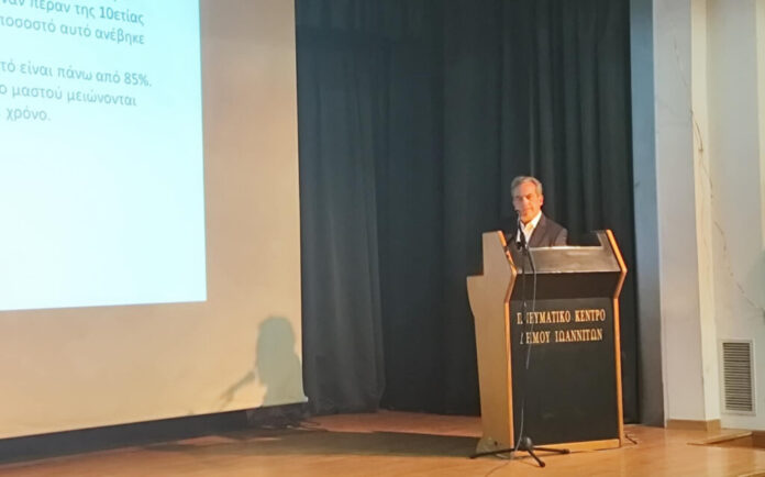 Μερικούς από τους πολλούς μύθους που κυκλοφορούν εδώ και δεκαετίες σχετικά με τον καρκίνο του μαστού προσπάθησε να καταρρίψει ο Καθηγητής Χειρουργικής Χάρης Χαρίσης στην ομιλία του που πραγματοποιήθηκε το απόγευμα της Τρίτης στο πλαίσιο της διημερίδας του Τομέα Κλασικής Φιλολογίας του Πανεπιστημίου Ιωαννίνων με τίτλο «Μαστο-γραφήματα. Ο καρκίνος του μαστού από την Αρχαιότητα έως σήμερα: Αφηγήσεις-Απεικονίσεις-Απαντήσεις».