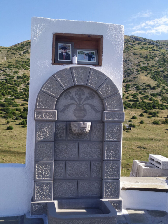 Αφιερωμένη στον Θωμά Κράβαρη και τον Δημήτρη Τσιλόγλου είναι η όμορφη πέτρινη βρύση που κατασκεύασε με προσωπική του εργασία στον προαύλιο χώρο της Αγίας Παρασκευής στην Καλουτά του Ζαγορίου, για να ξεδιψούν οι κυνηγοί και όχι μόνο, ο παπα – Γιώργης, τον οποίο ευχαριστούν θερμά οι οικογένειες των δύο αείμνηστων, που είχαν πάθος με το κυνήγι.