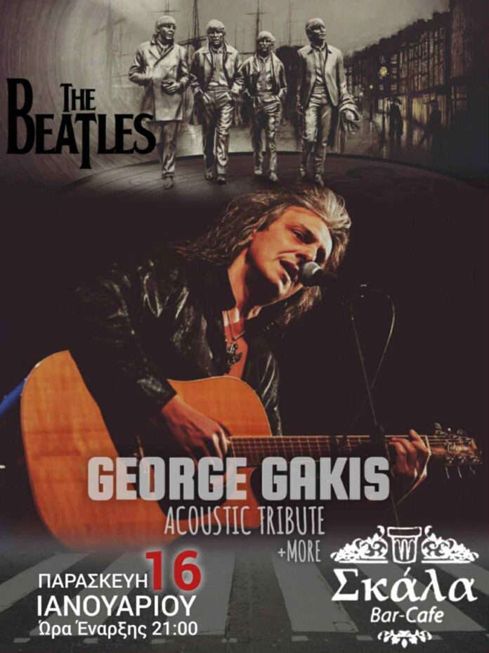 Ένα μουσικό αφιέρωμα στους Beatles θα παρουσιαστεί την Παρασκευή 16 Ιανουαρίου στη Σκάλα Bar-Cafe, με τον George Gakis σε acoustic tribute. Η εκδήλωση θα ξεκινήσει στις 21:00 και υπόσχεται μια βραδιά με αγαπημένες επιτυχίες των θρυλικών Beatles, σε ακουστική εκτέλεση.