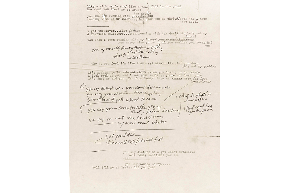Αυτό, όμως, που κάνει το χειρόγραφο ξεχωριστό, είναι η παρουσία ενός δεύτερου, ακυκλοφόρητου τραγουδιού που συνοδεύει το προσχέδιο του γνωστού κομματιού. Δακτυλογραφημένο σε δώδεκα γραμμές στο πάνω μισό της σελίδας, το άγνωστο τραγούδι έχει για ρεφραίν το στίχο “running with the devil” (τρέχοντας με τον διάβολο), ενώ τελειώνει “It’s just me and you .. Far from home/ there we were far from calvery (γολγοθάς)”.