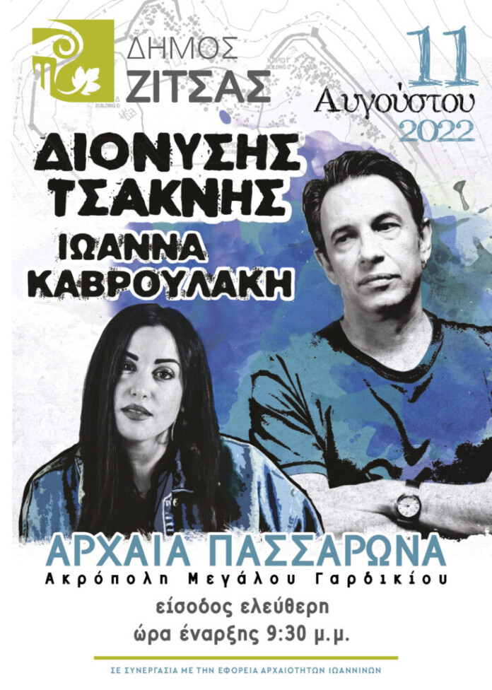 Με συναυλία του Διονύση Τσακνή, θα γιορτάσει φέτος την Αυγουστιάτικη Πανσέληνο ο Δήμος Ζίτσας στον αρχαιολογικό χώρο της Ακρόπολης Μ. Γαρδικίου, στο λόφο «Καστρί» την Πέμπτη 11 Αυγούστου.