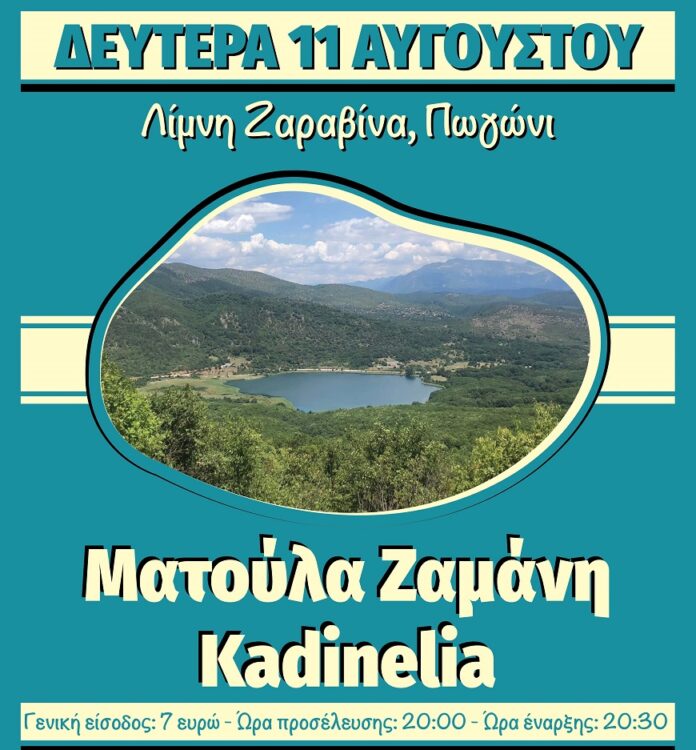 Τη Δευτέρα 11 Αυγούστου, στη σκηνή του φεστιβάλ θα ανέβει η Ματούλα Ζαμάνη, πλαισιωμένη από το δυναμικό ντουέτο των Kadinelia. Οι δύο καλλιτεχνικές δυνάμεις ενώνουν τις ιδιαιτερότητες και τις μουσικές τους καταβολές, προσφέροντας ένα πρόγραμμα που συνδυάζει την εσωτερικότητα του λόγου με την ενέργεια της παράδοσης και του σύγχρονου ήχου.