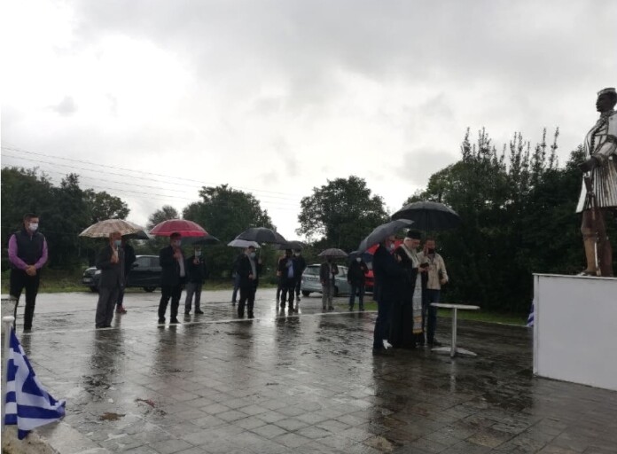 Υπό καταρρακτώδη βροχή και τηρώντας όλα τα μέτρα προστασίας από τη διασπορά του κορωνοϊού τίμησε ο Δήμος Πωγωνίου τη μνήμη του Ηπειρώτη Μακεδονομάχου Παύλου Μελά, σε μία ιδιαίτερα λιτή τελετή που περιελάμβανε μόνο επιμνημόσυνη δέηση και κατάθεση στεφάνου από το δήμαρχο, Κ. Καψάλη.