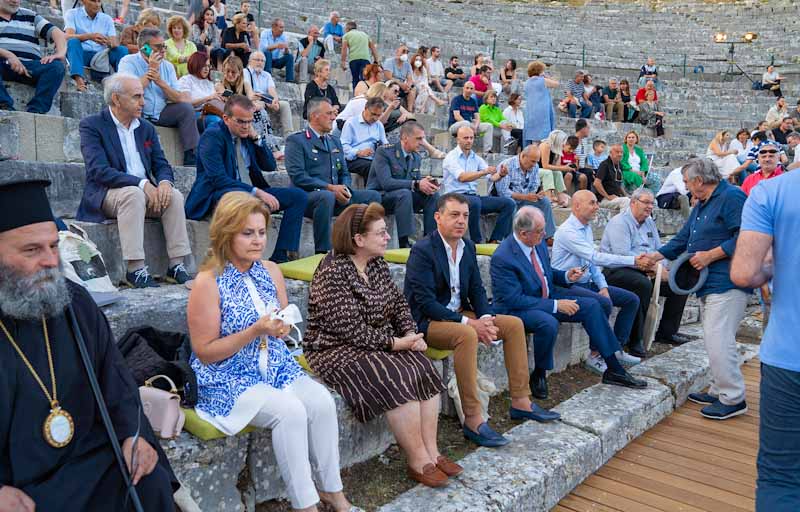 Η εκδήλωση που έγινε το βράδυ της Τρίτης στον αρχαιολογικό χώρο ήταν λιτή και απέριττη, όπως ταιριάζει σε έναν μνημειακό αρχαιολογικό χώρο, που αποκτά όμως πλέον τη δυνατότητα να φιλοξενήσει και πάλι, θεατρικές παραστάσεις και μουσικές εκδηλώσεις, με δεδομένη την απόφαση της Πολιτείας, οι εργασίες να συνεχιστούν άμεσα και στο επάνω διάζωμα.
