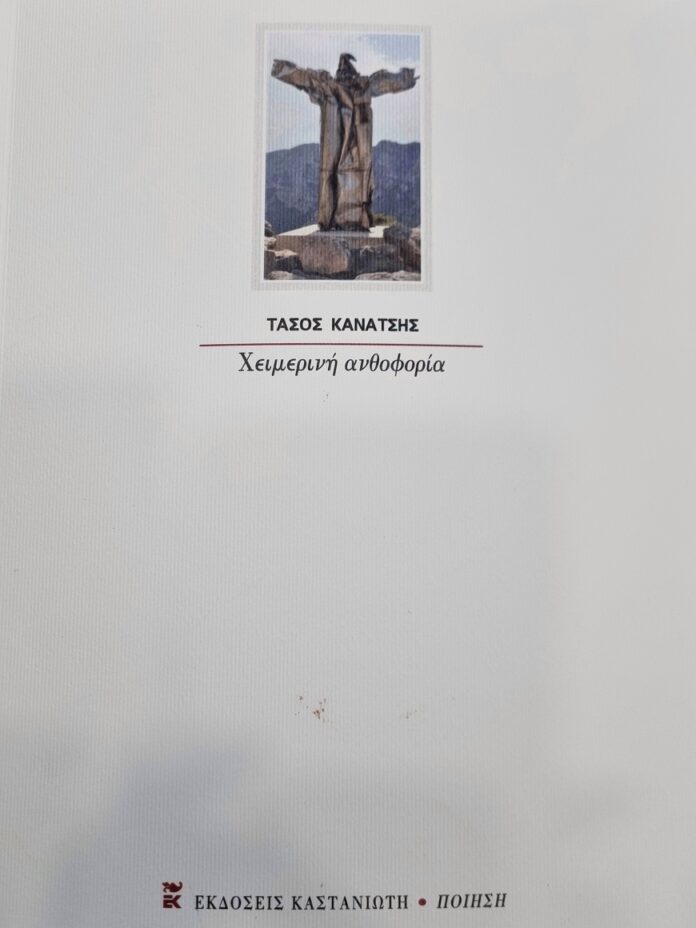 Το Πνευματικό Κέντρο Δήμου Ιωαννιτών και οι εκδόσεις Καστανιώτη παρουσιάζουν την ποιητική συλλογή του Τάσου Κανάτση «Χειμερινή ανθοφορία», την Πέμπτη 2 Νοεμβρίου στις 19:00, στον Πολιτιστικό Πολυχώρο «Δ. Χατζής».
