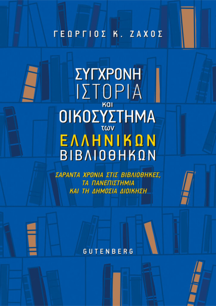 Ο Εκδοτικός Οίκος Gutenberg και το Πνευματικό Κέντρο του Δήμου Ιωαννιτών παρουσιάζουν την Τετάρτη 21 Δεκεμβρίου και ώρα 18:30, στον Πολιτιστικό Πολυχώρο «Δημήτρης Χατζής», το βιβλίο του τ. Διευθυντή της Βιβλιοθήκης του Πανεπιστημίου Ιωαννίνων Γεωργίου Κ. Ζάχου, «Σύγχρονη ιστορία και οικοσύστημα των ελληνικών βιβλιοθηκών: Σαράντα χρόνια στις βιβλιοθήκες, τα πανεπιστήμια και τη δημόσια διοίκηση», Αθήνα: Εκδόσεις Gutenberg, 2022.