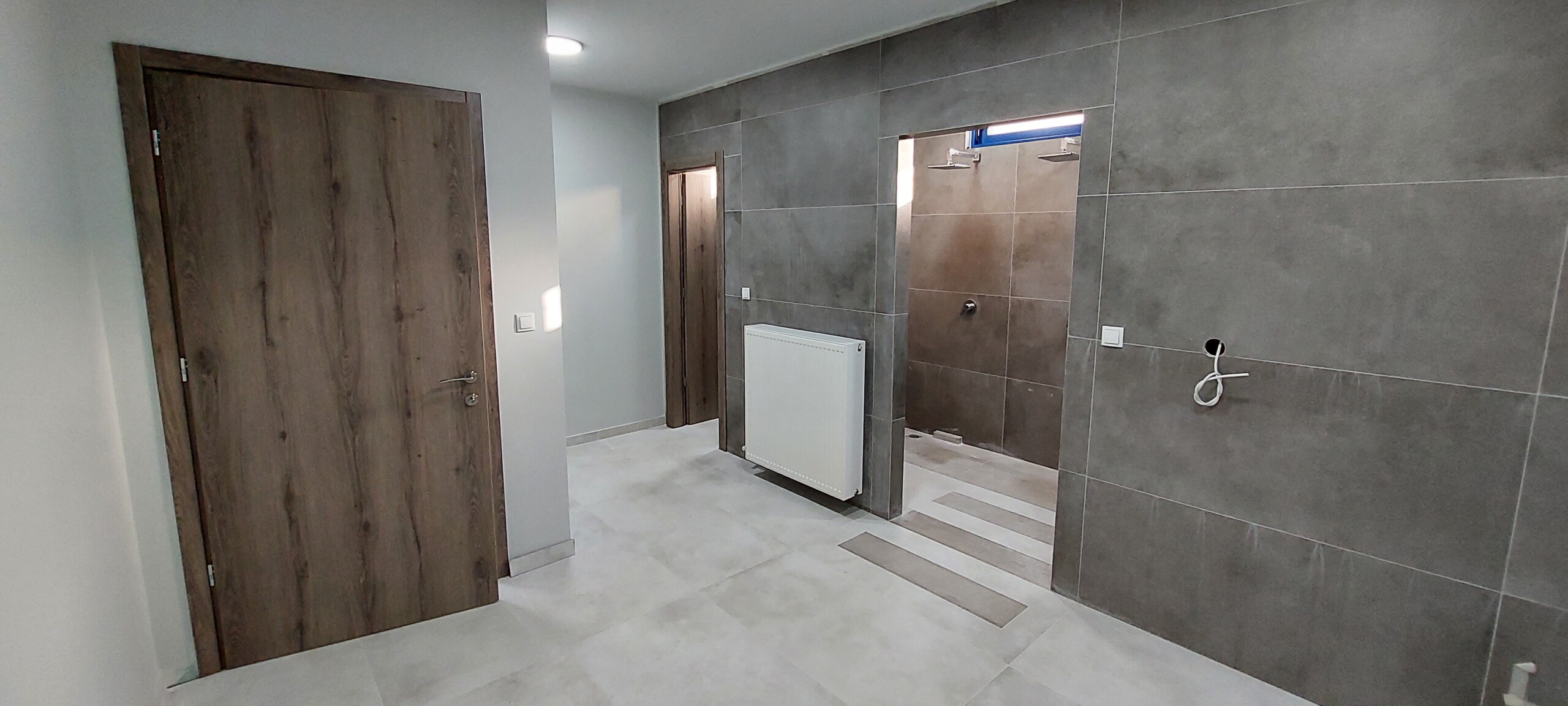 Συγκεκριμένα, στο ισόγειο κατασκευάστηκαν δύο ολοκαίνουργια αποδυτήρια αθλητών, χωρητικότητας 8 αθλητών το καθένα (το ένα πληροί προδιαγραφές ΑΜΕΑ), ένα αποδυτήριο προπονητή, μία τουαλέτα κοινού, το λεβητοστάσιο και ένας αποθηκευτικός χώρος.
