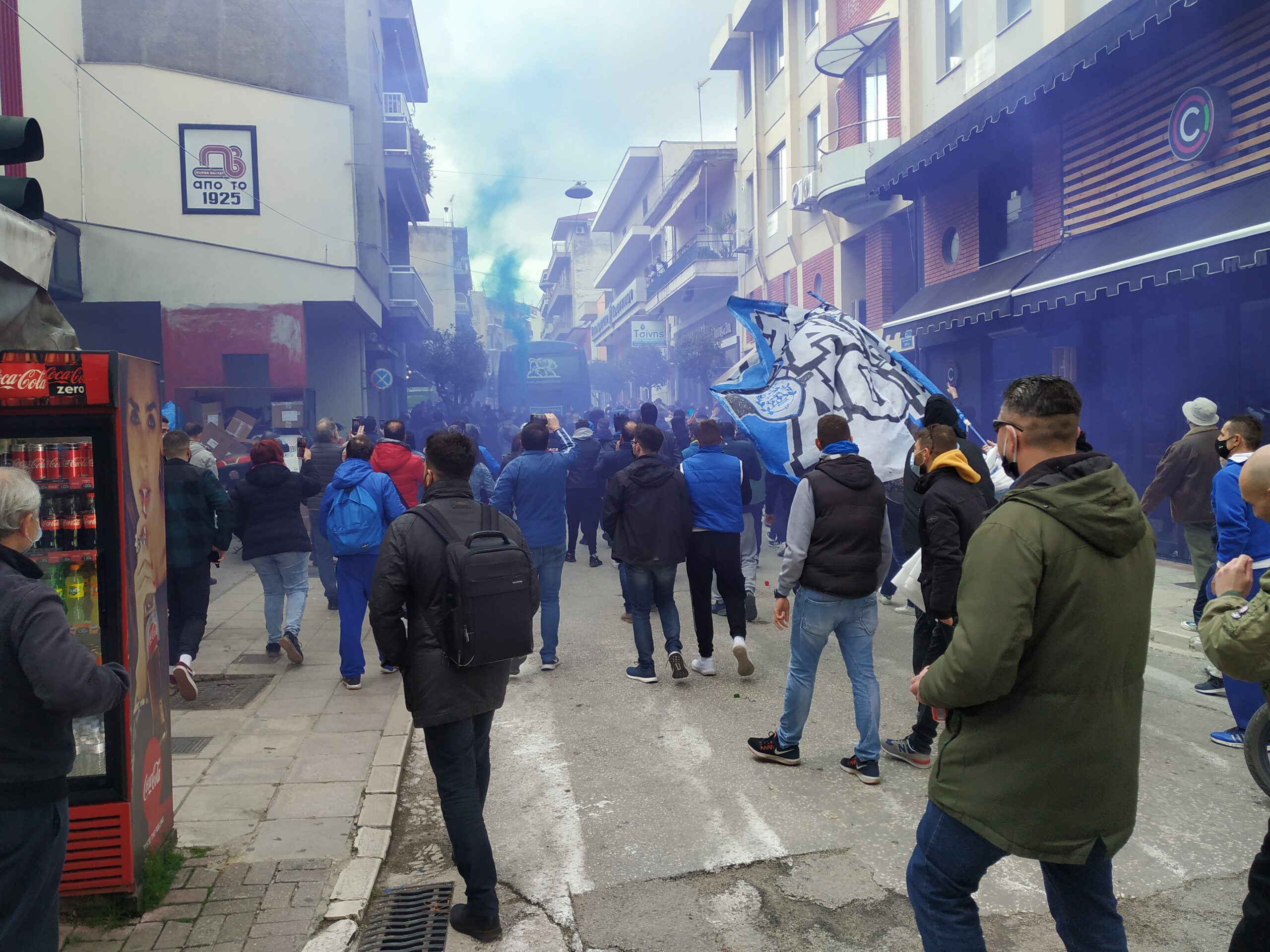 Από την οδό Βηλάρα μέχρι και το Εθνικό Στάδιο, κατέκλυσαν, κυριολεκτικά, κεντρικούς δρόμους της πόλης των Ιωαννίνων, με καπνογόνα και φωνάζοντας συνθήματα για να εμψυχώσουν την ομάδα ενόψει του αγώνα.