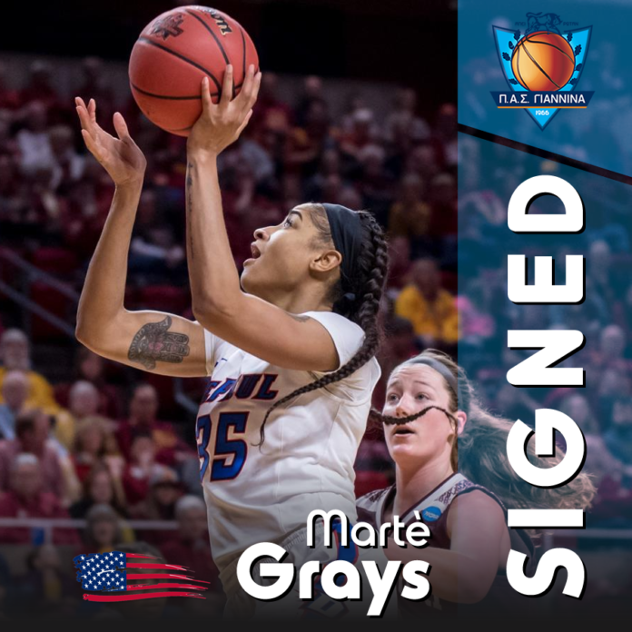 Η διοίκηση του ΠΑΣ Γιάννινα WBC ανακοίνωσε την απόκτηση της Αμερικανίδας Combo Forward Martè Grays, μιας πολύ δυναμικής αθλήτριας, τόσο κοντά στο καλάθι όσο και μακριά από αυτό.