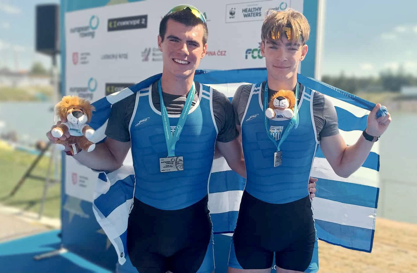 Κωνσταντίνος Γιαννούλης και Ιάσονας Μουσελίμης κατέκτησαν το ασημένιο μετάλλιο στο Διπλό Σκιφ Νέων Ανδρών, ανεβαίνοντας για μία ακόμη φορά φέτος στο βάθρο διεθνούς κωπηλατικής διοργάνωσης.