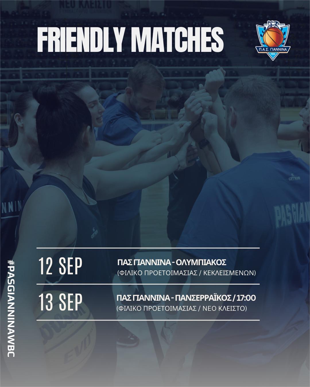 Η γιαννιώτικη ομάδα θα αντιμετωπίσει το απόγευμα της Παρασκευής στις 19.30 τον Ολυμπιακό σε ένα φιλικό ματς κεκλεισμένων των θυρών, ενώ το Σάββατο στις 17.00 θα γίνει το παιχνίδι του ΠΑΣ με τον Πανσερραϊκό, αγώνας που θα είναι ανοικτός για τους φιλάθλους, με γενική είσοδο 5 ευρώ.
