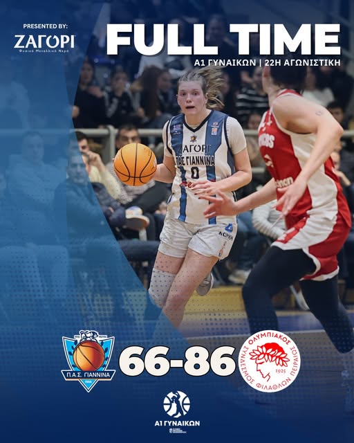 Την ήττα με 66-86 γνώρισε ο ΠΑΣ Γιάννινα από τον Ολυμπιακό στην τελευταία αγωνιστική της κανονικής περιόδου, αποτέλεσμα που τον έφερε στην 7η θέση της βαθμολογίας.