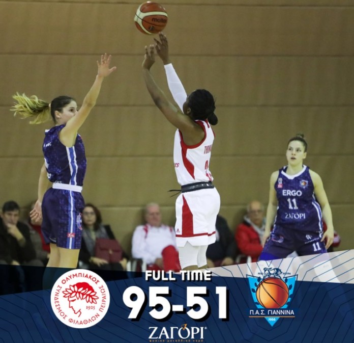 Ήττα με σκορ 95-51 από τον Ολυμπιακό για την 12η αγωνιστική του πρωταθλήματος, γνώρισε η ομάδα του ΠΑΣ ΓΙΑΝΝΙΝΑ WBC.