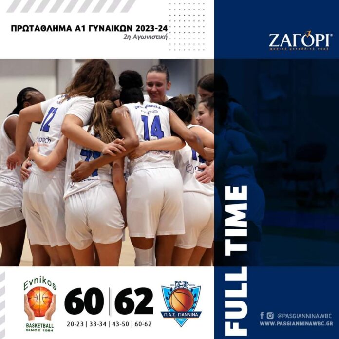 Εκτός έδρας νίκη με 60-62 επί του Εύνικου για την 2η αγωνιστική του Πρωταθλήματος της Α1 Εθνικής Γυναικών σημείωσε ο ΠΑΣ Γιάννινα WBC.