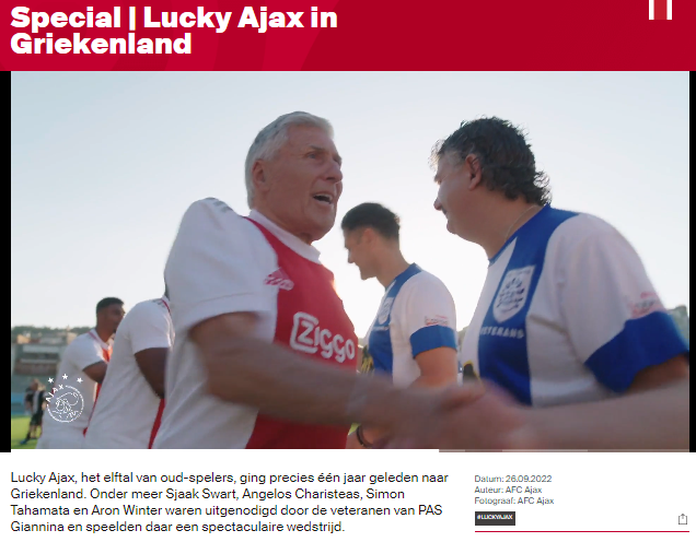 Με τη συμπλήρωση ενός έτους από τη διεξαγωγή του φιλικού αγώνα, οι βετεράνοι του Άγιαξ, οι Lucky Ajax όπως είναι το όνομά τους, θυμήθηκαν την παρουσία τους στην Ελλάδα και τα Ιωάννινα και στην επίσημη ιστοσελίδα του συλλόγου (ajax.nl) συνοδεύουν το ημίωρης διάρκειας βίντεο από την παρουσία τους στην Ελλάδα και το φιλικό παιχνίδι, με ένα συγκινητικό κείμενο για τους «φίλους» από τα Ιωάννινα.