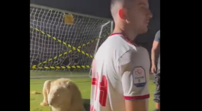 Ωστόσο, σε ανύποπτη στιγμή το λιοντάρι βρυχήθηκε και ο Μανωλάς τρόμαξε. Η αντίδραση του κεντρικού αμυντικού ήταν επική.