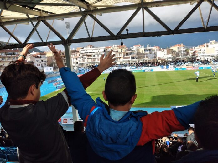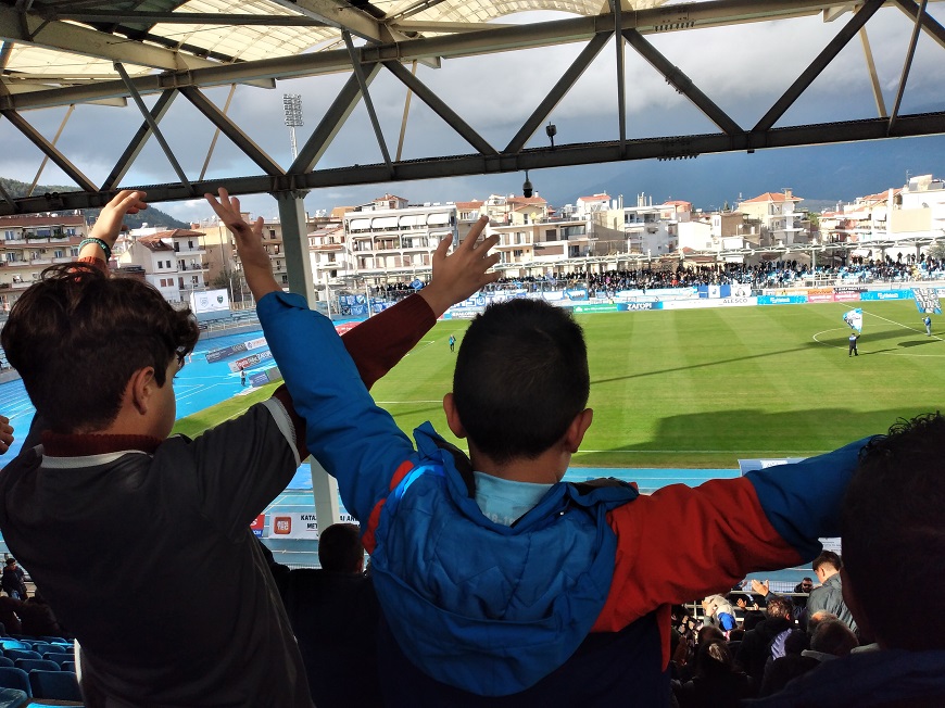 Αφορμή για το σχόλιο μας δόθηκε από τη φωτογραφία που δημοσιεύουμε από το παιχνίδι με τον Μακεδονικό όπου δύο παιδάκια κάπου γύρω στα οκτώ τους, αν μπορούμε να υπολογίσουμε καλά, κάνουν «χέρια» στη μεγάλη σκεπαστή κερκίδα, πριν την έναρξη του αγώνα, συμμετέχοντας σε αυτή τη γιορτή.