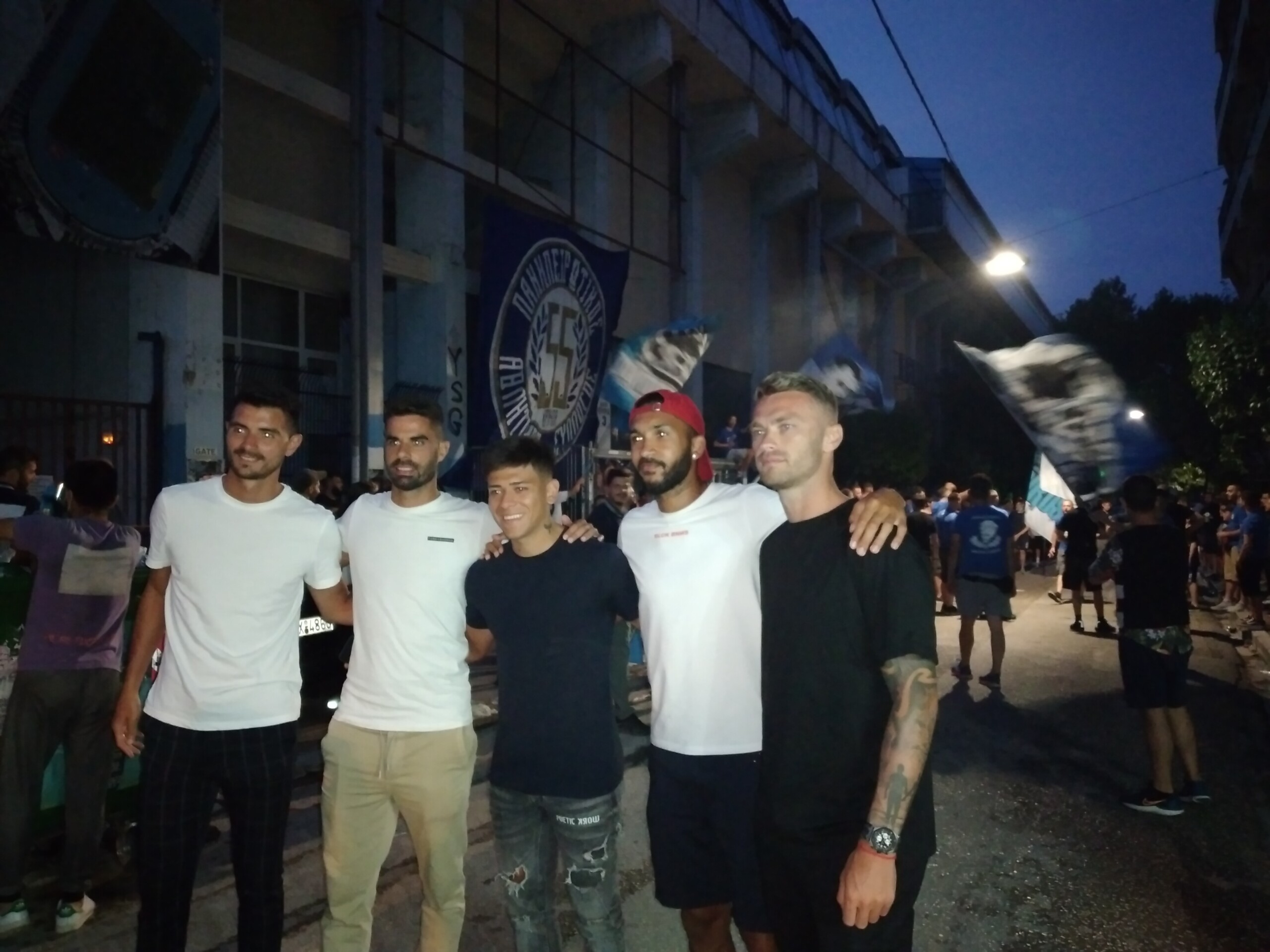 Λίγο μετά τις 21.30 έκαναν την εμφάνιση τους ο πρόεδρος του ΠΑΣ Γ. Χριστοβασίλης, ο προπονητής Ηρ. Μεταξάς και οι παίκτες Σιόντης, Οικονομόπουλος, Παντελάκης, Πίρσμαν, Μιλιντσεάνου, Μπρένερ, Ντομίνγκεθ και Εραμούσπε.