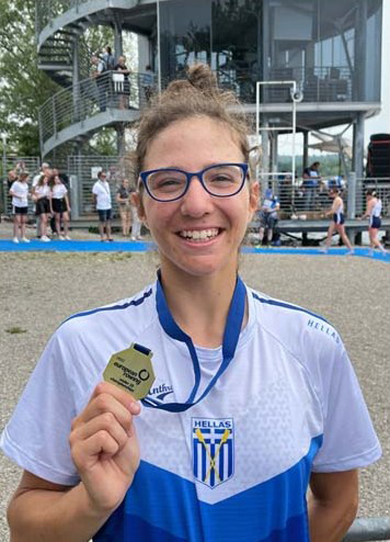 H νεαρή αθλήτρια, μετά από δυναμικές εμφανίσεις, κέρδισε το χρυσό μετάλλιο και στέφθηκε Παγκόσμια Πρωταθλήτρια 2022 στο Σκιφ Νεανίδων καθώς και Πρωταθλήτρια Ευρώπης στο ίδιο αγώνισμα, αναδεικνύοντας την Ελλάδα πρώτη δύναμη στη γενική κατάταξη στην κατηγορία -19!