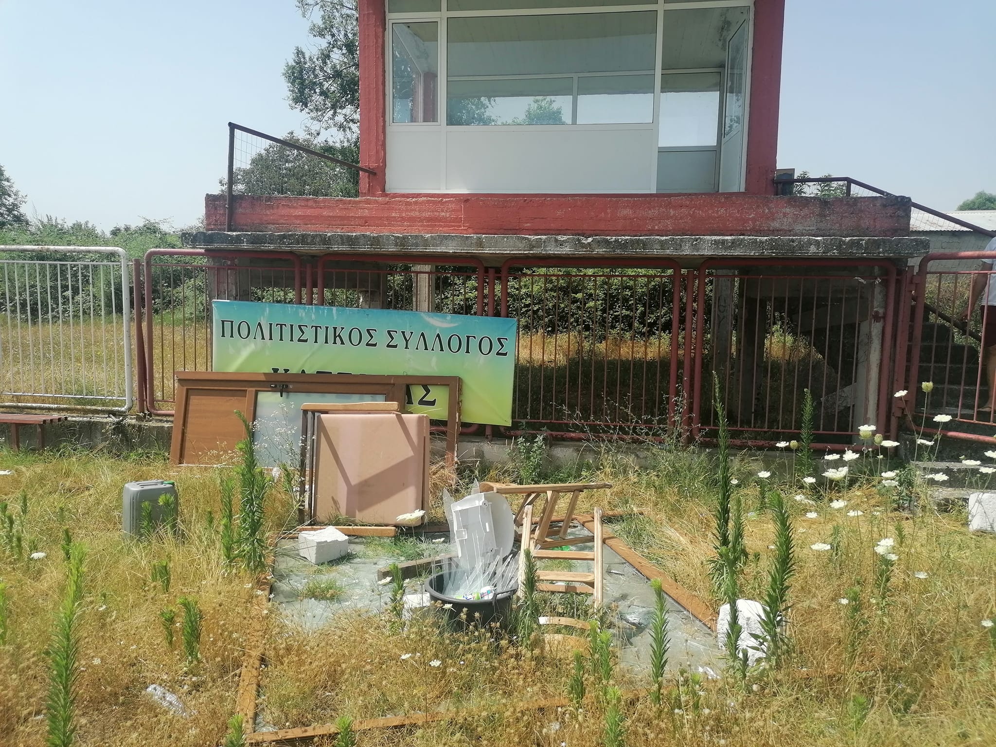 Μετά την καταστροφή που προκάλεσε ασυνείδητος οδηγός με την εισβολή στο βοηθητικό γήπεδο της Θύελλας Κατσικά, χθες μπήκε και το κερασάκι στην τούρτα με τους βάνδαλους να προχωρούν σε ένα ακόμη βήμα καταστροφής των δημοσιογραφικών θεωρείων, αλλά και των καθισμάτων στην κερκίδα.