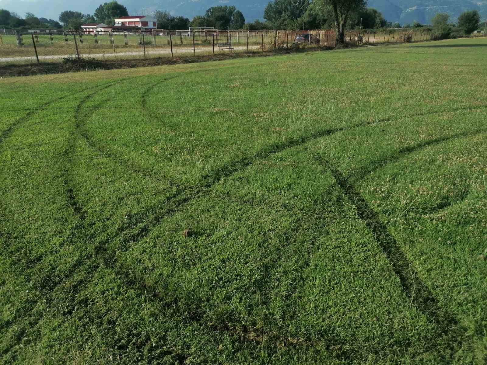 Όπως φαίνεται και στις φωτογραφίες που αναρτήθηκαν στα μέσα κοινωνικής δικτύωσης, στο γήπεδο μπήκε κάποιος ασυνείδητος με το όχημά του και το κατέστρεψε.