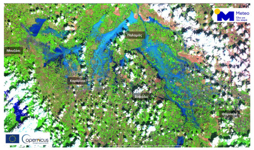 Σύμφωνα με το Meteo του Εθνικού Αστεροσκοπείου Αθηνών, πάνω από 210.000 στρέμματα στον θεσσαλικό κάμπο είναι κάτω από το νερό.