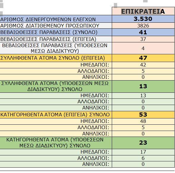 Επικράτεια: Πίνακας αποτελεσμάτων δράσης περί παράνομων τυχερών παιγνίων ενόψει εορτών Χριστουγέννων, νέου έτους και Θεοφανείων.