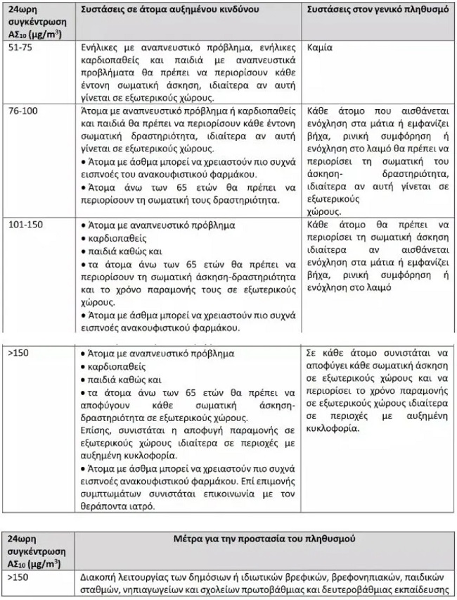 Όσο μεγαλύτερη γίνει η συγκέντρωση των σωματιδίων, τόσο μεγαλώνουν και τα μέτρα που πρέπει να λαμβάνουν οι πολίτες.